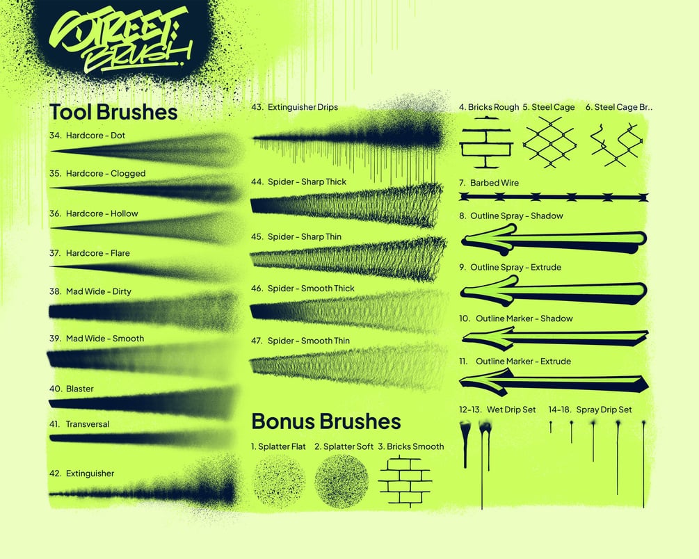 47 Graffiti & Street Art Essential Brushes + 18 Bonus Brushes